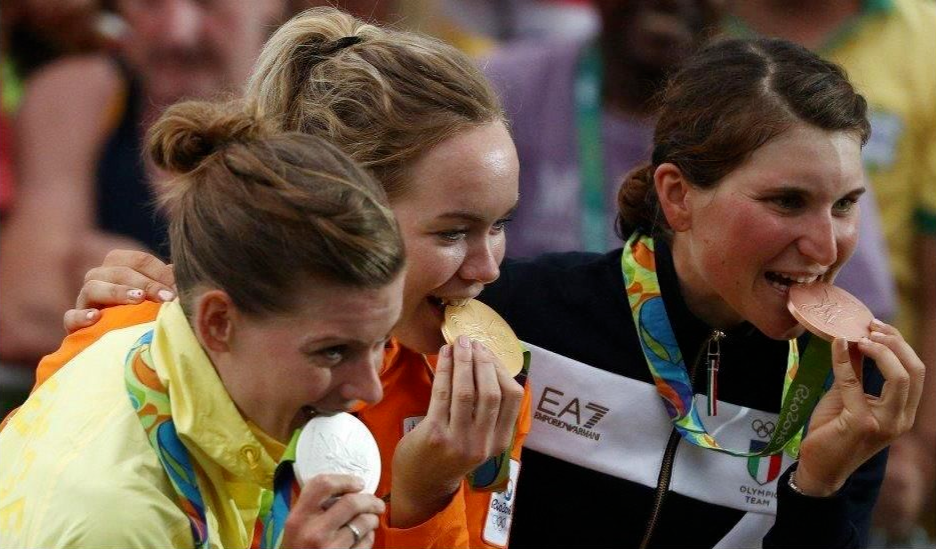 在奥运会中得奖是最激动人心的时刻,每次发奖牌运动员们都会有一个习惯性的动作就是咬一下奖牌,表示内心激动的喜悦心情。