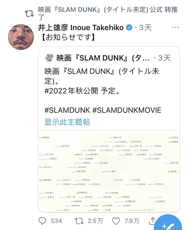 井上雄彦先生似乎是生怕大家觉得这是个假消息,还特地转发了官方推特的视频: