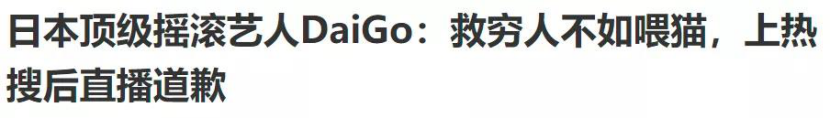 与此同时,由DaiGo代言的一款矿泉水也紧急发布道歉声明,将中止使用他出演的广告。