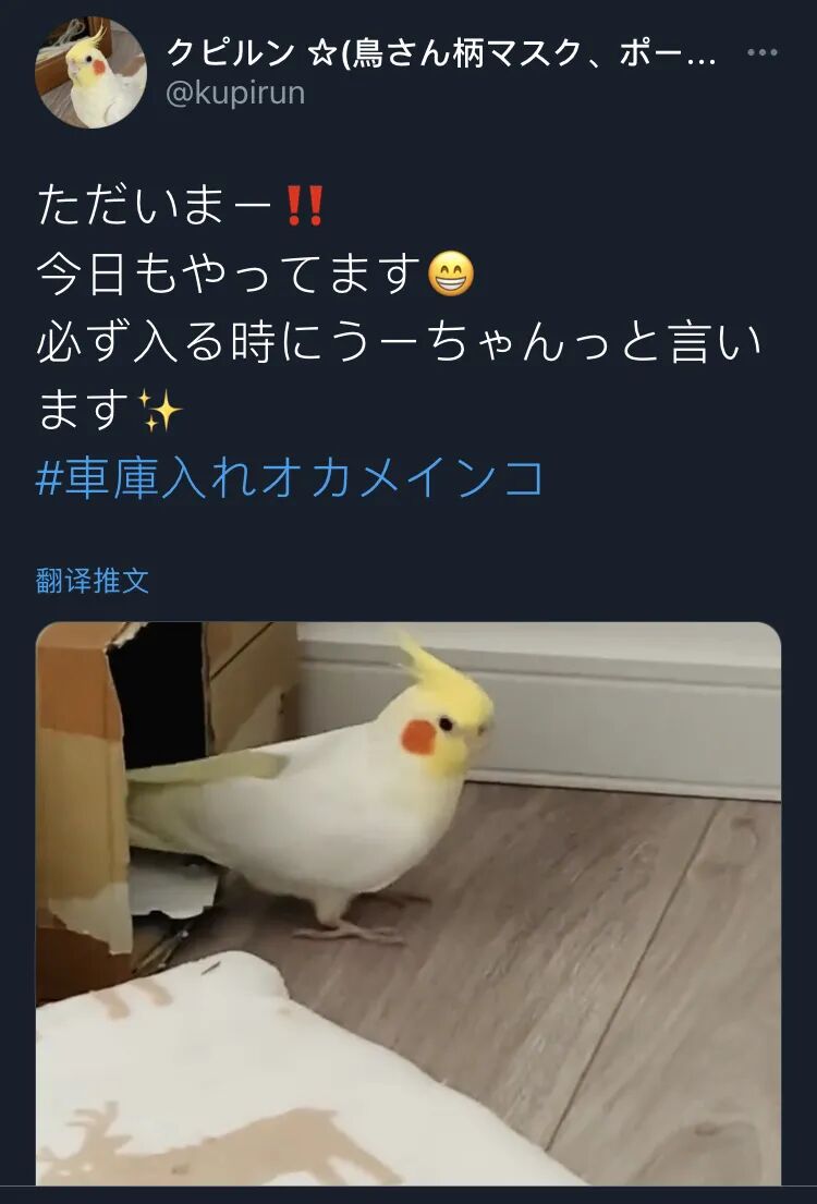 这不前两天,推特上出现了一位倒库能手(?)。这位名为@kupriun的推特主介绍的不是别人,正是自家的鹦鹉ウニ君。