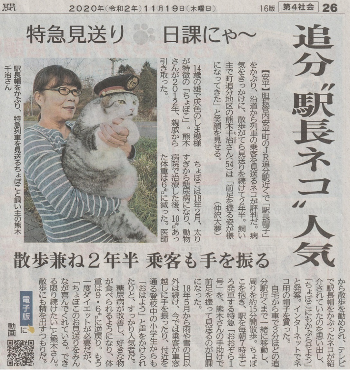 2021年8月15日,14岁的ちょぼこ去了喵星,而它的故事也留在了追分站,留在了人们的心里。