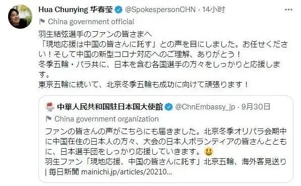 9月29日随着北京冬、残奥会不面向境外观众售票的决定公布,很多羽生结弦的日本粉丝遗憾不已,大家纷纷表示:现场加油,就拜托中国观众了。