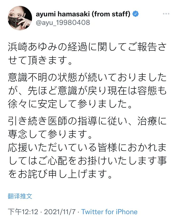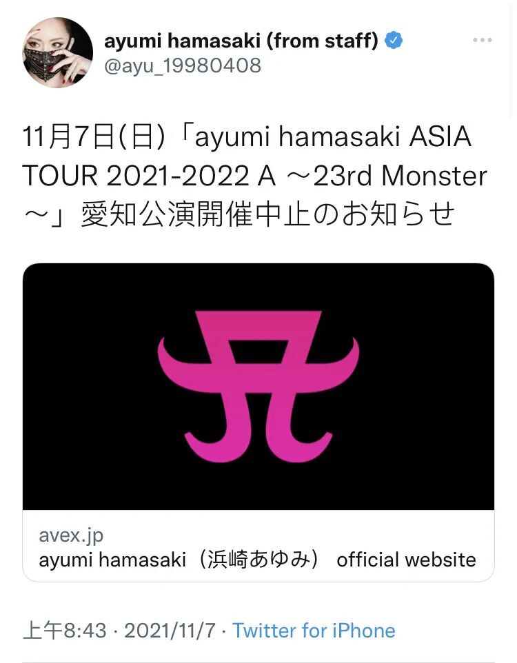 (滨崎步官方推特公告)