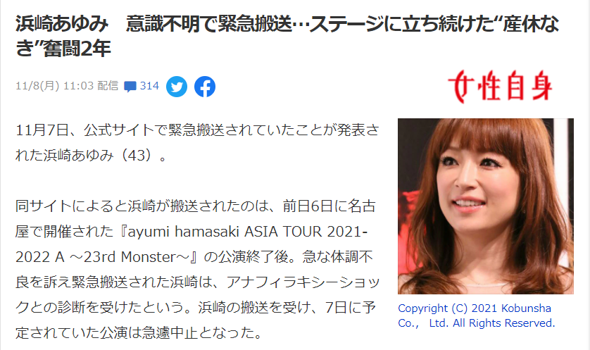 (日媒关于滨崎步突发休克的报道)