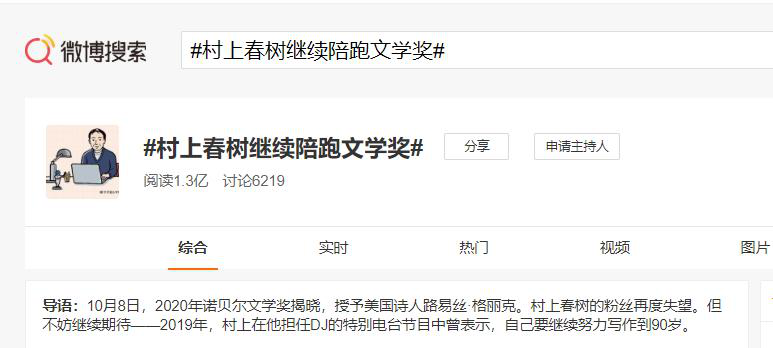 10月8日19点,2020年诺贝尔文学奖正式揭晓,不出意外,在读者中呼声很高的村上春树依旧“陪跑”,热搜安排得明明白白,网友表示:又是心疼村上春树的一年...