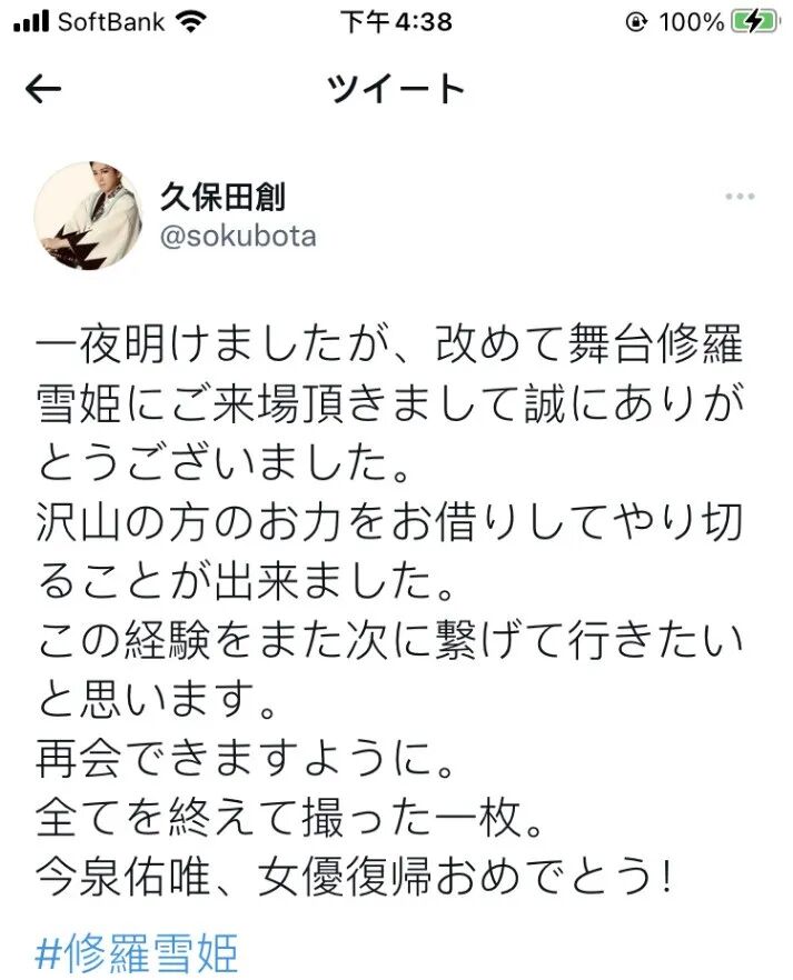 但在今年的11月19日,今泉佑唯终于以一部名为《修罗雪姬》的舞台剧复出了!