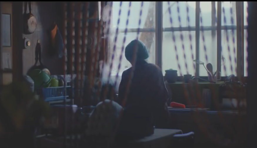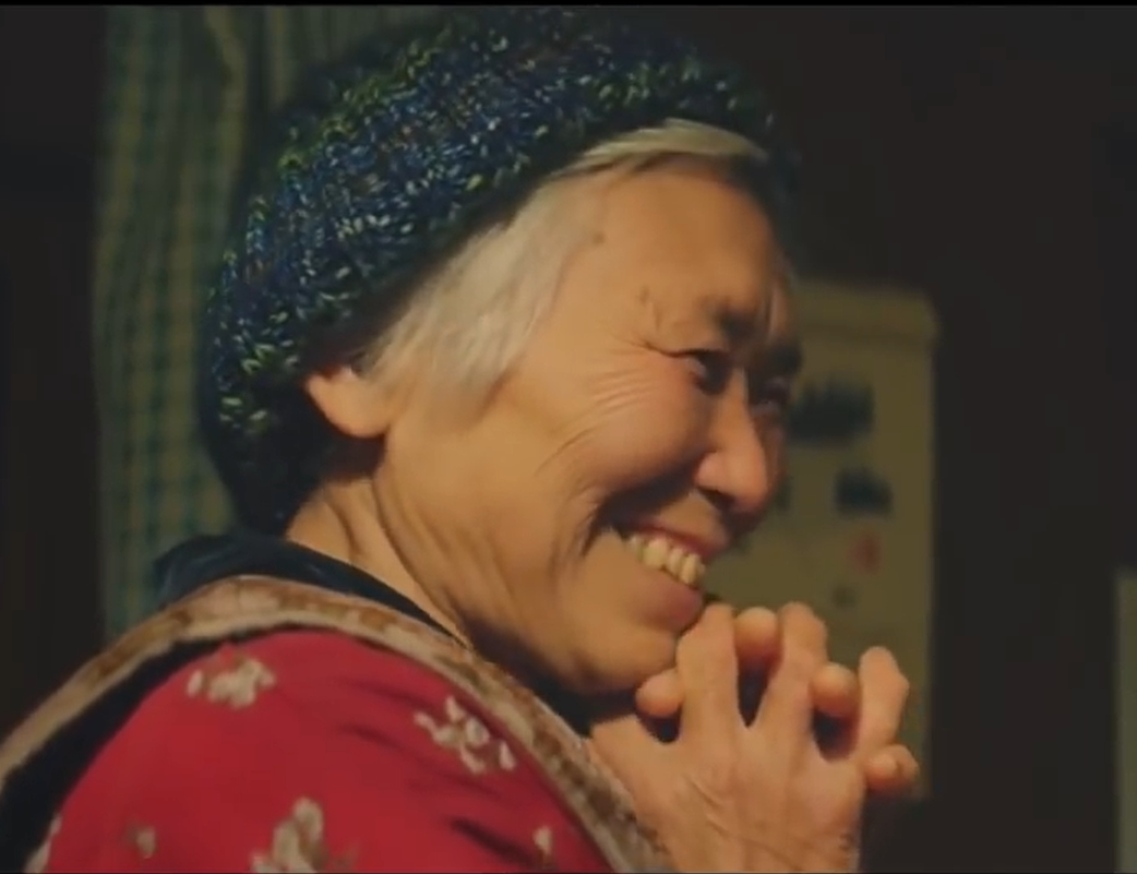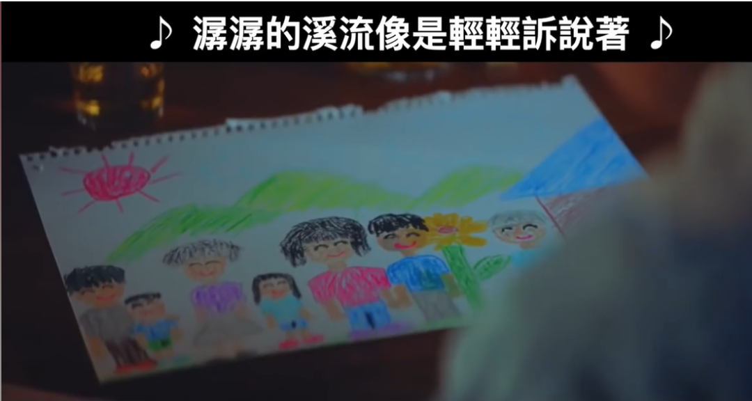 有一天,奶奶的家人来看望她,家人出现的画面仅仅只有两个镜头,也就是这几秒钟的镜头,呈现了奶奶影片里最欢乐的时光,过后也就剩奶奶独自拿着孙子的画去怀念那一份欢愉。