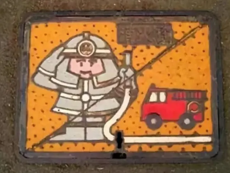 不同形状的井盖用途也有区别,如消防栓的井盖大多是方形,上面刻有消防队员的卡通图案。