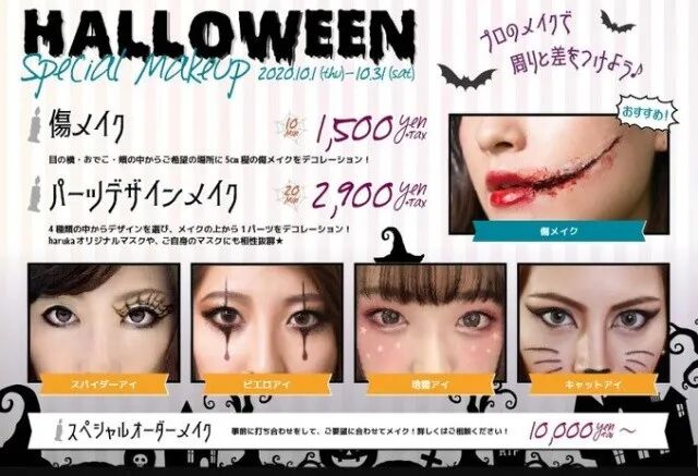 此外,2,900日元的四种眼妆也可任君选择:蜘蛛,小丑,地雷和猫。