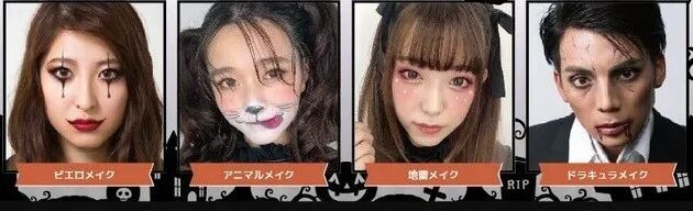 虽然日本与西方的宗教八竿子打不着边,但是随着明治时期以来盛行的西化及商家有意识地打造下,万圣节逐渐进入到日本人的视野中。在压抑的社会环境及浓厚的cosplay文化的双重作用下,“变装”与日本年轻人可谓是一拍即合。在选择了心仪的衣服后,鬼灵精怪的“万圣妆容”可谓是变装成功的决胜砝码!