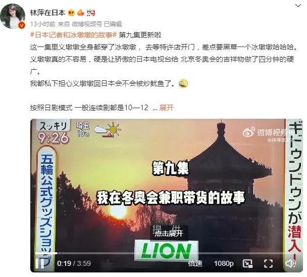 微博博主@林萍在日本 还为网友持续更新了冰墩墩和义墩墩的故事,目前已经更新到了第九集