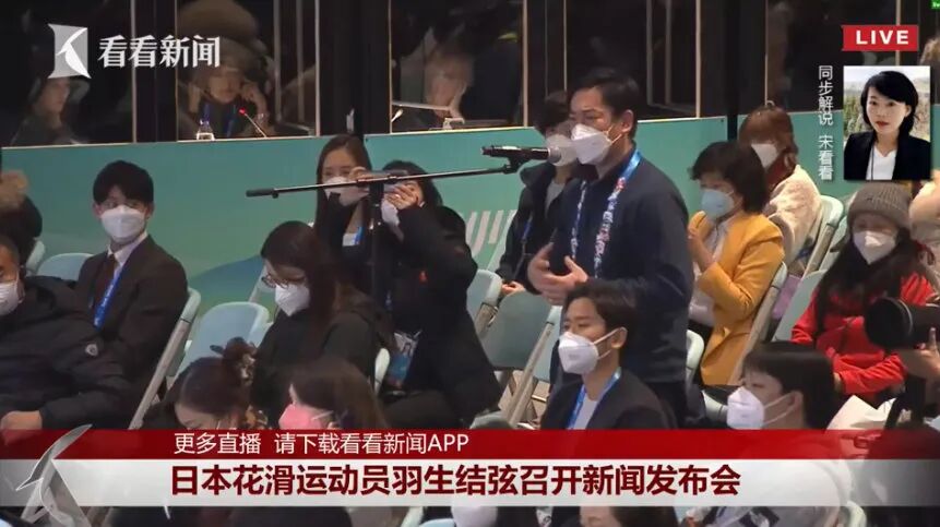 在2月14日羽生结弦的记者发布会上,义墩墩也作为日本电视台记者向羽生选手提问,称他是“作为王者去进攻,去挑战”。