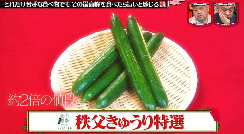 于是节目组为太田博久准备了最高级的秩父黄瓜,号称甜度、香味、脆爽感都是一绝的,价格也是普通黄瓜的两倍。