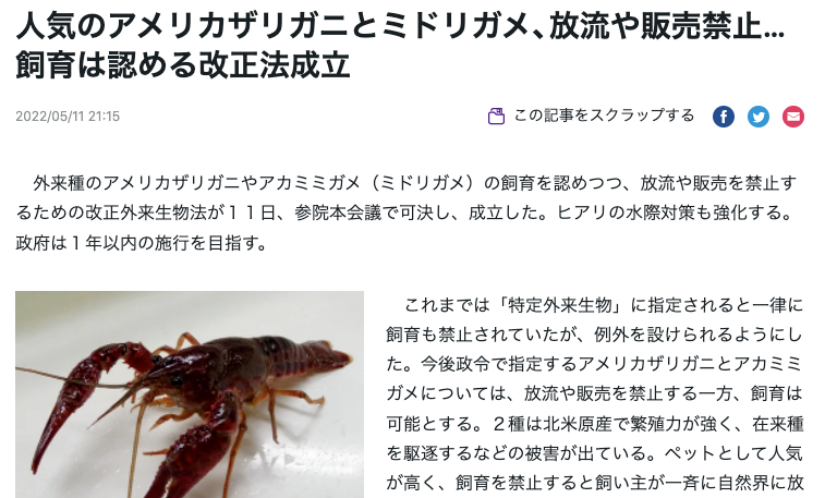 要知道,小龙虾最初是作为牛蛙的食物远渡重洋从美国引进日本的,虽然由于路途遥远200只最终只存活了20只,但小龙虾在臭水沟都能生存的过硬生命力为它们种族保留了在日本繁衍昌盛的一线生机。