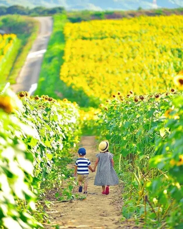 Noriyuki Kajiawara镜头下的画面宛如童话般美好,孩子们穿梭在自然里像两个小精灵一样,有田野村庄,碧绿蓝天,孩子们在乡野间玩乐,拍照,日子何不惬意。