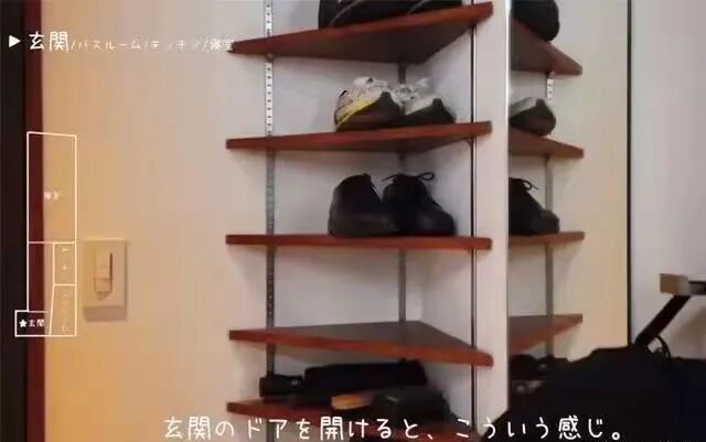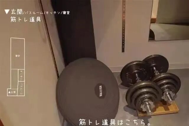 一位29岁日本小哥分享,他在东京的一所小房子里。这间房子只有11㎡,但是却塞下了卧室、厨房、卫生间和浴室,还有小小的玄关,可谓麻雀虽小,五脏俱全。玄关转角的空间是一个三脚架板,上面鞋子排放整齐有序,玄关角落放着哑铃等健身器材。