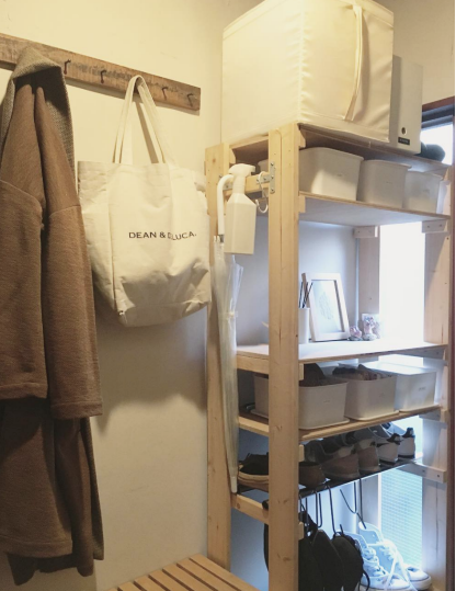 在玄关处安装挂钩,收纳盒,方便出门时可以随手拿放,像围巾,大衣,钥匙等的物品。