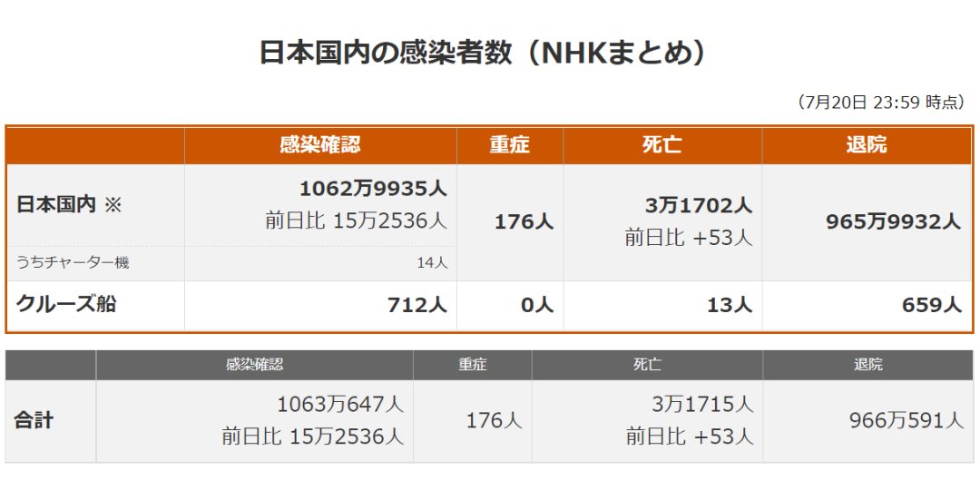 本以为上周播报的日增9万已经是我能接受的极限了,没想到一天比一天生猛。前两天听到了小伙伴的播报,说是新冠日增已经达到15万人,而我之前居住的熊本县感染人数已经达到了2600人,到了7月20日时已经达到了3700人。
