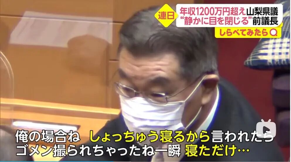 看看,这位议员对于自己在会议期间打瞌睡怎么解释的:“认为照相机拍到的只是睡觉的那一瞬间,今后想进一步改善休养和小睡。”