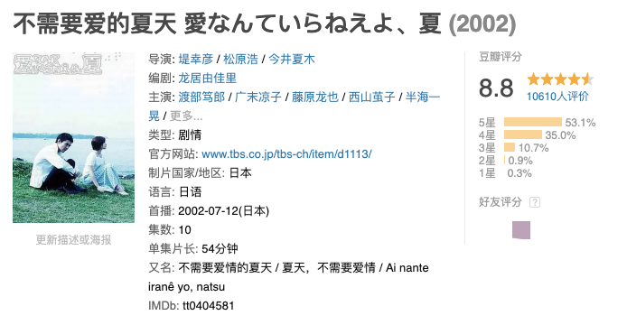 所以,在当时来说这部题材新颖的纯爱剧一经播出,就吸引了观众的目光,如今在豆瓣的评分一直保持在8.8的高分。