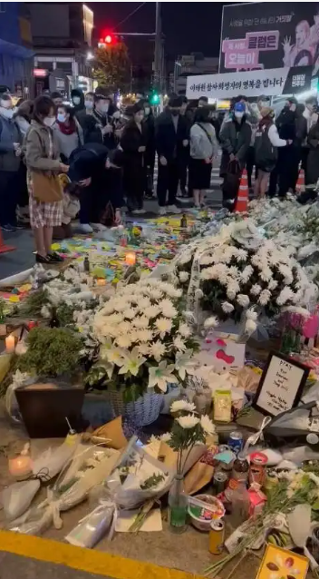29日晚芽生盛装和朋友一起相约梨泰院游玩,不难想象一个外国女孩来到异国第一次参加这种大型节日活动,心情一定是很兴奋、喜悦的。看到网上流传出来的现场视频,人流开始都还是很正常,但越往前走人也变得越多,越拥挤,到最后寸步难行,个子偏低的人被人群疯狂挤压到窒息,不知内心是怎样的绝望和痛苦。