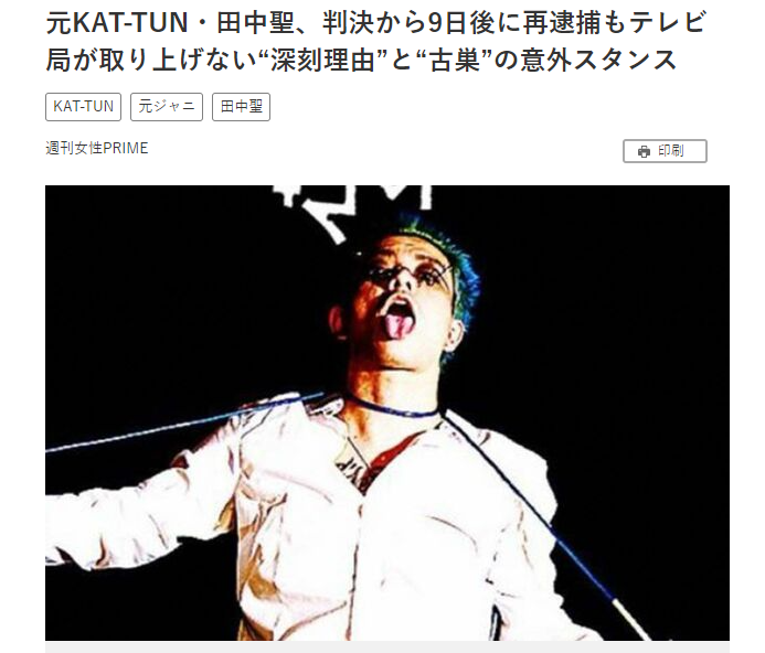 2月份,田中圣涉嫌在酒店持有兴奋剂被捕。面对警方询问,他一开始不认,但之后承认自己持有兴奋剂,3月底被保释。