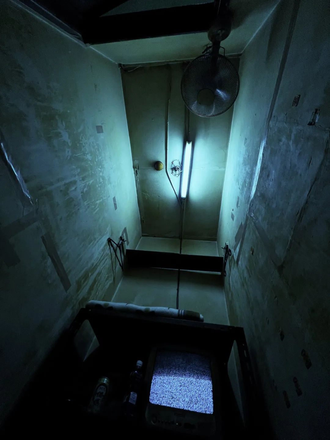 如果说开灯是狭窄逼仄、脏脏落魄,那么关上灯后,则是恐怖氛围呈指数增长。开灯吓人,关灯更吓人。