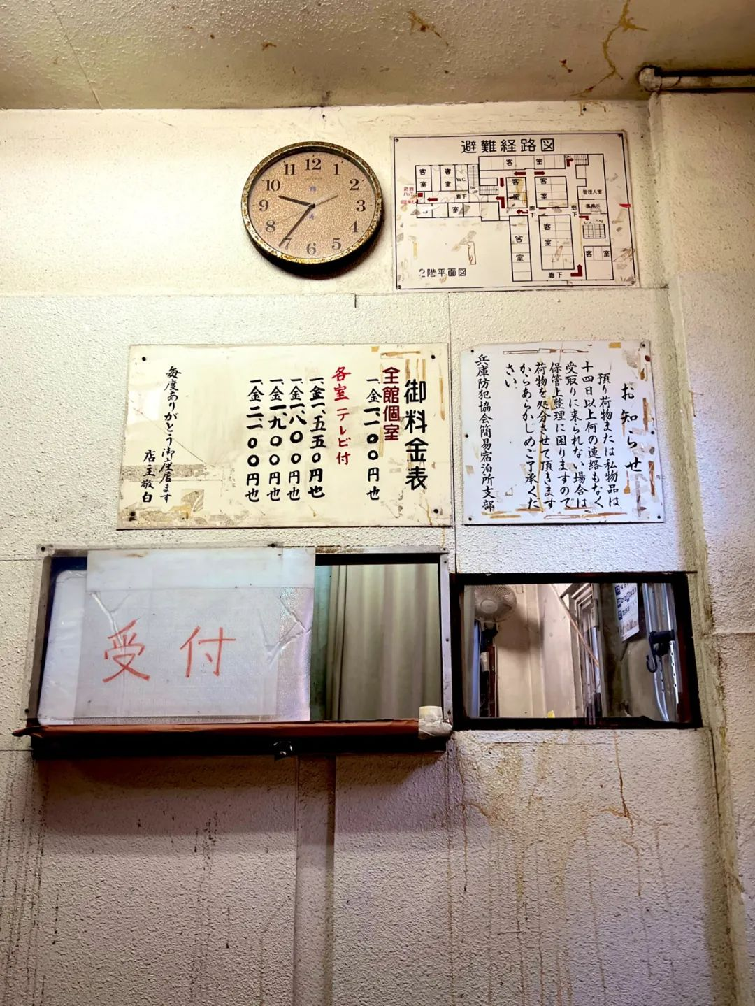 但是,一旦走进旅馆,就好像打开了另外一个世界的大门。非一般的旅馆体验从接待处就可以略窥一二。工业磨砂风的墙壁,贴满了泛黄的简陋纸张,接待窗口墙壁下面的不明水渍蜿蜒而下。