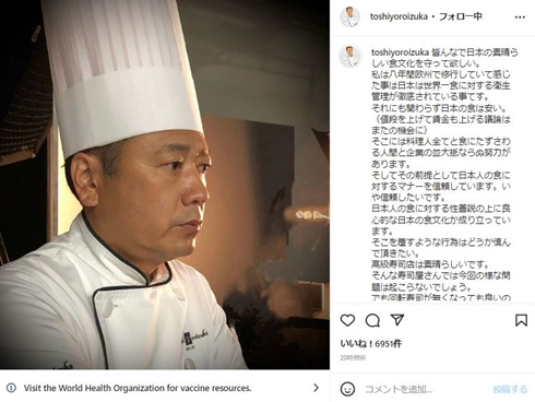 虽然这些措施已经开始实施,但对于食品安全极为重视的日本社会显然还是对这次出问题的“回转寿司”店铺心有余悸,对此和果子制作匠人鎧塚俊彦于2月2日在ins上发声,表示“日本能有现在的食品安全方面的成绩,是因为各位与料理相关的从业人员共同努力的结果”,而出现这样的事情之后,他还表示“我们这样的料理人需要加强对于食品卫生方面的重视程度” ,并对回转寿司店的将来表示了担忧。