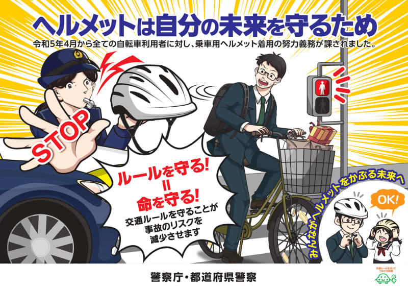 根据改定版本的日本道路交通法规定,4月1日开始将努力推行“戴头盔骑自行车上路”这一举措。而为了给民众起到示范作用,警察厅以及各都道府县的警察,将通过网络、发放传单等形式宣传这一举措。