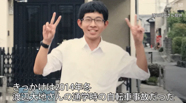 说起来,日本警视厅的这些宣传的确不是空穴来风,血泪的交通事故比比皆是。平成26年(2014年)3月,在爱媛县伊予市发生了一起交通事故:名为渡边大地的高中一年级学生骑着自行车在放学回家的路上遭遇了交通事故,由于被击中了头部以及颈部,再加上没有戴好头盔,在被送往医院的路上不幸去世。据他的同学和老师说,孩子的性格很好,喜欢摄影,但因为这场交通事故,他的一切都停在了2014年,令人唏嘘不已。