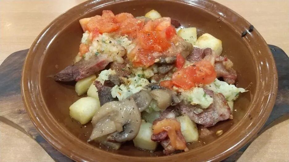 ・ラムときのこのきこり風(Boscaiola风格烤羊肉)(700円)+やみつきスパイス(单独点的香料)(50円)