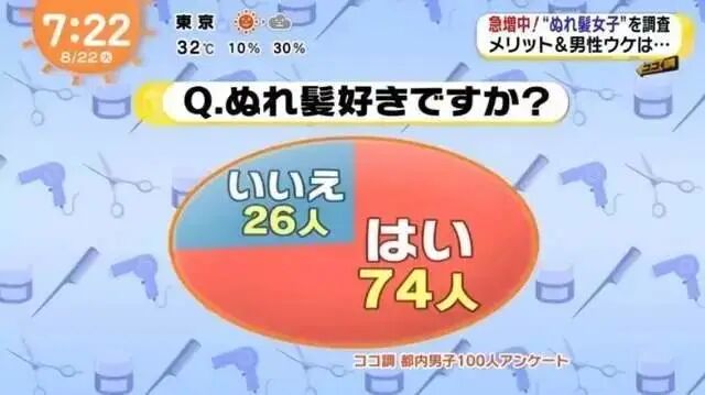 早在2017年,日本街头随机采访100位男生票选干湿发造型时,就有74人选择了湿发造型!