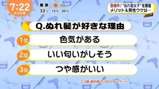 而问及原因,大多数认为:看起来很性感、闻起来香香的、湿发看起来很有光泽......