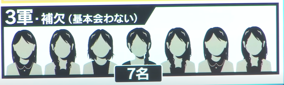 他把15位小姐姐分成了4个军团,第1、2军团共有8位小姐姐,第3军团和候补共有7位小姐姐。划分的条件就是,看脸。