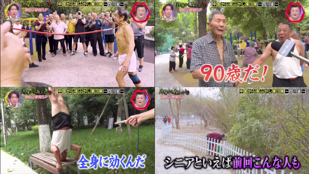更震惊的还有公园里的爷爷奶奶们!什么金枪锁喉、76岁倒立练铁头功、90岁高抬腿跑步、自创乱动体操、无聊到去挖野菜...不禁让人感叹:川渝爷爷奶奶们的精神状态领先我们100年!