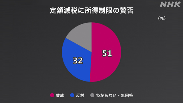 关于明年6年即将实施的缴税人每人获得4万日元的减税政策,自明党提出了“应该将富人阶层排除在外并限制其所得”的意见,对此赞成人数的比例达到51%,反对比例达到32%,“无法回答”的比例则达到了17%。