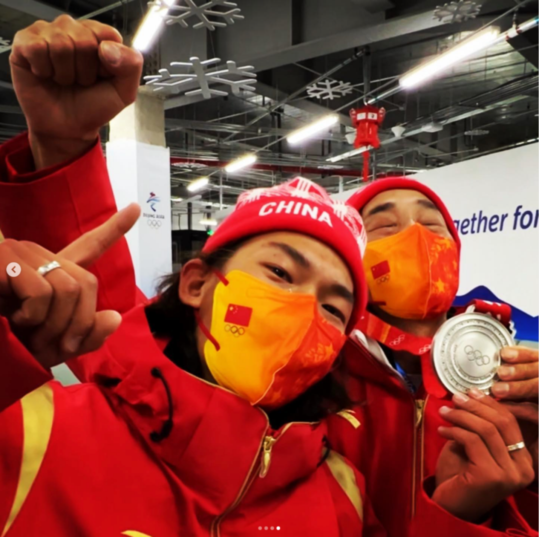 佐藤康弘(右)跟苏翊鸣在北京冬奥夺冠后的合影