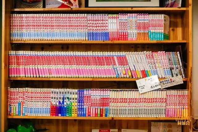 店面太小他又在街道口新开了一家,店坐落在安静、宽敞的三楼,还留了一着地方专门装修成日语角,门口贴着五十音图,架子上面摆满了日语漫画书,墙上还贴满了各种便利贴、留言和数不清的温暖故事。
