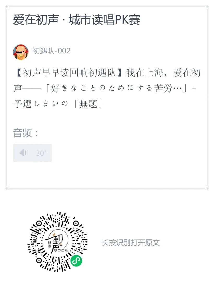 “爱在初声·城市读唱PK大赛”邀你来当大众评委啦!先到先得,速速速