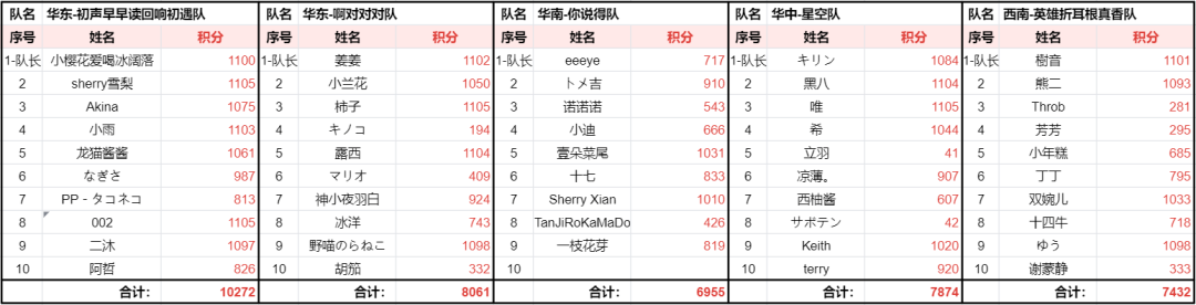 由进入决赛的3支队伍【华东-初声早早读回响初遇队】、【华东-啊对对对队】、【华中-星空队】的成员们,各公推1位队内贡献最大的成员,队长汇总后将名单提交至初声君