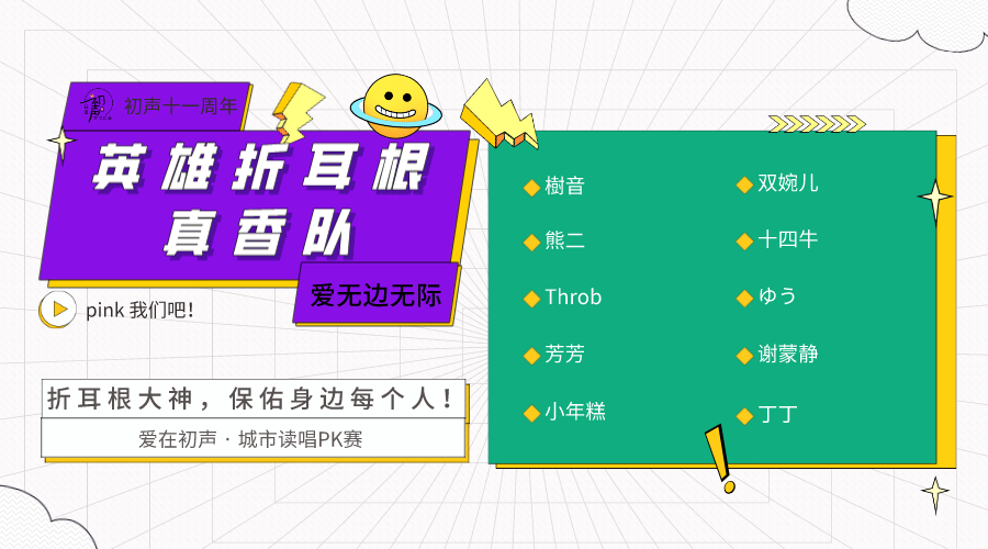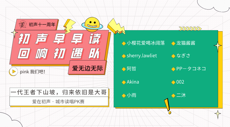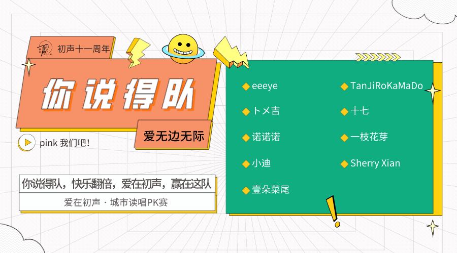没有人生来就懂得如何去爱,对待爱我们都是从青涩到成熟,有意思的是本次周年庆活动——爱在初声·城市读唱PK赛的参赛队伍在为期13天的初赛里尽兴地自定义了我们对待爱从青涩到成熟之间那妙不可言的成长滋味……