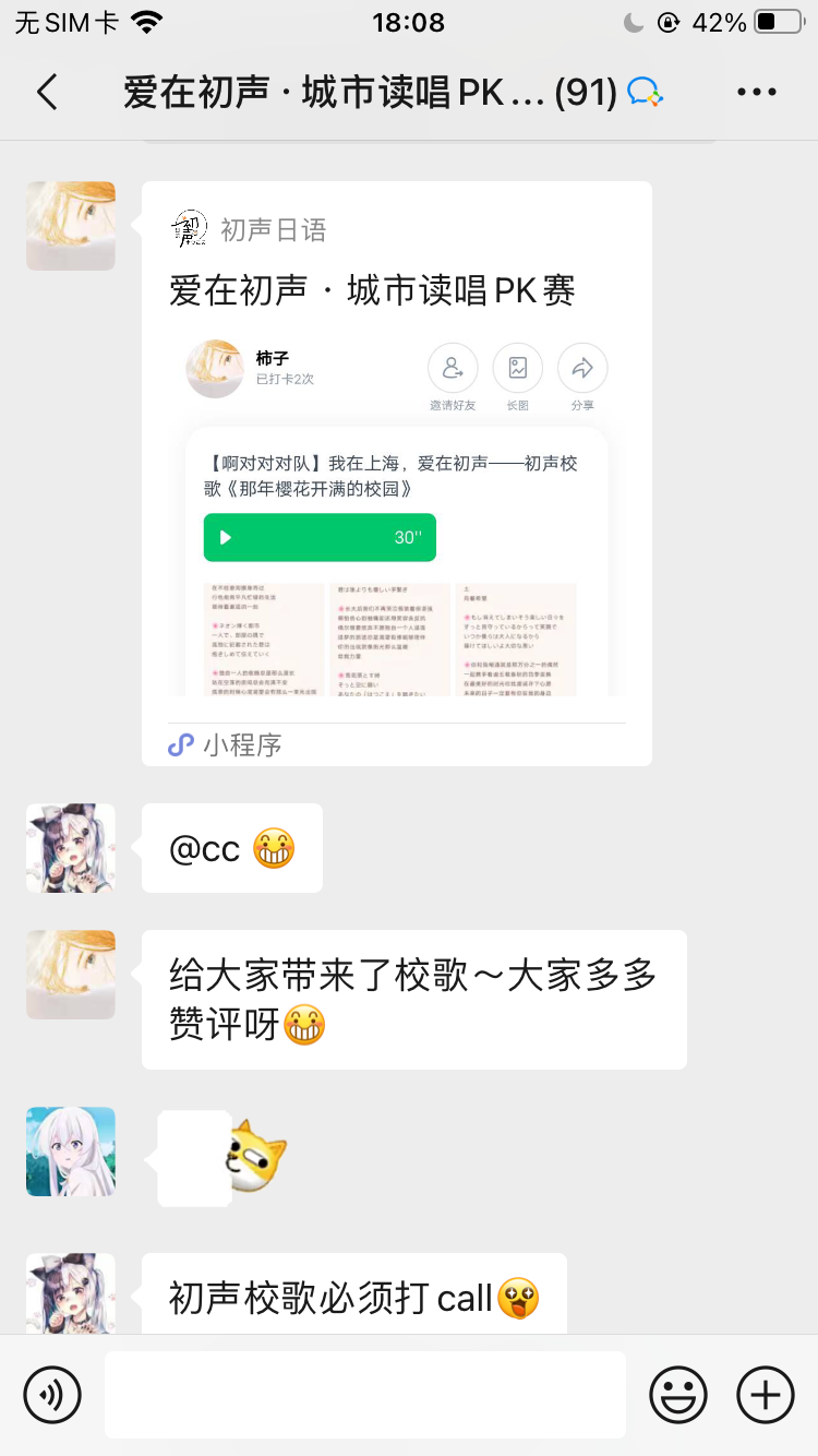 本次我们有5支方队,5位队长分别携麾下10位队员在初声日语声海里开启了一场声生不息的PK!累计打卡529次,积分最高获得1105分,每天在群里都能看见大家热乎出炉的新作,彼此还相互点赞鼓励!更有气氛组啦啦队的小伙伴们为各队员们呐喊助威!