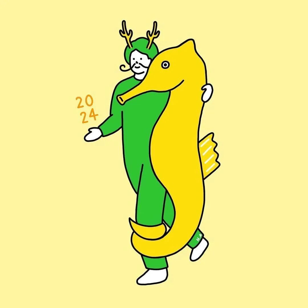 日语的海马是「タツノオトシゴ(竜の落とし子)」直译过来就是“龙的私生子”(麻吉!)。因为读音上有「タツ」而龙年的日语又是「辰年(たつどし)」所以日本也有很多用海马表达龙年设计。