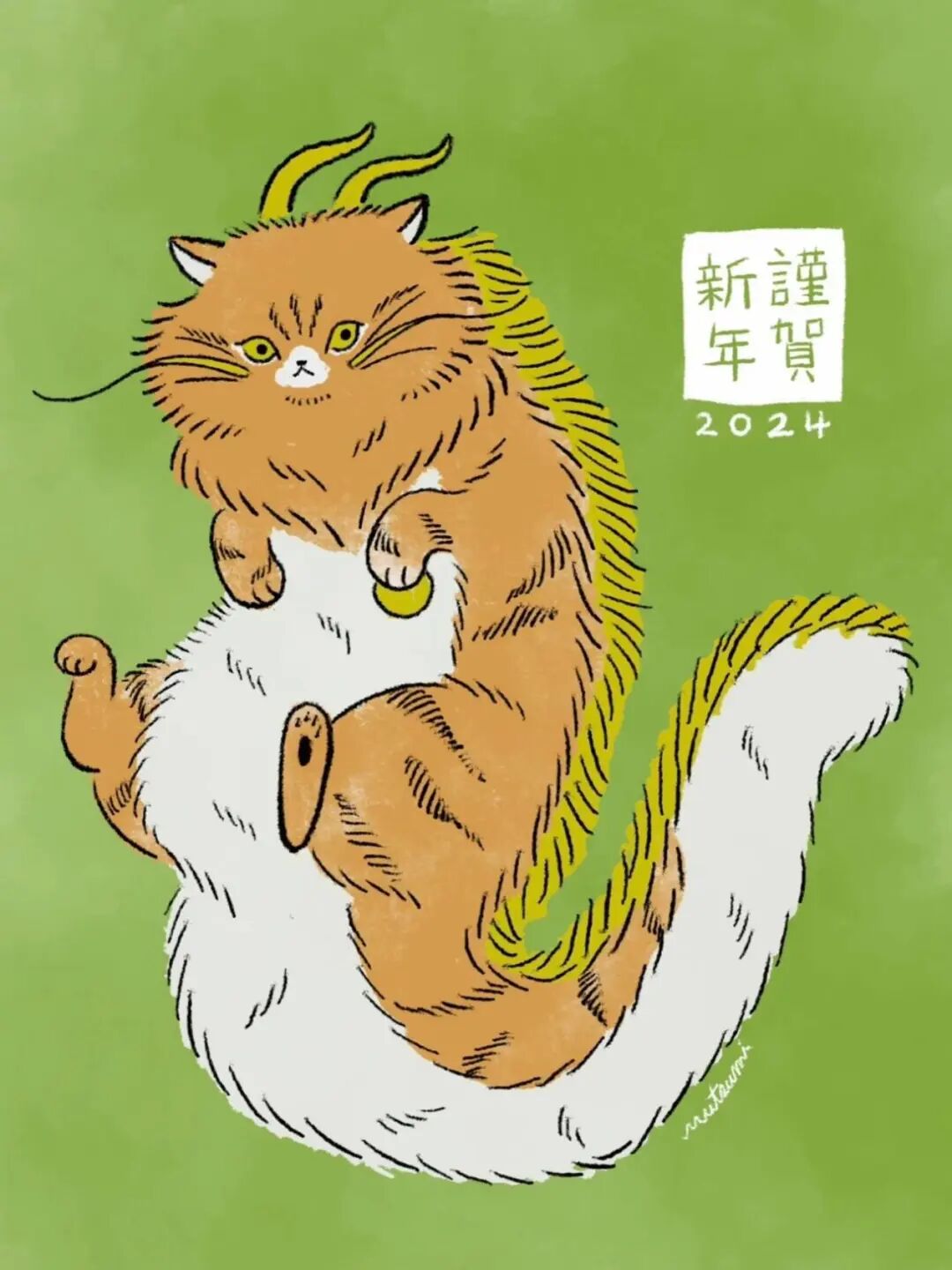 东京插画师Mutsumi Kawazoe将龙化成了一只大橘猫,让人感觉眼前一亮。