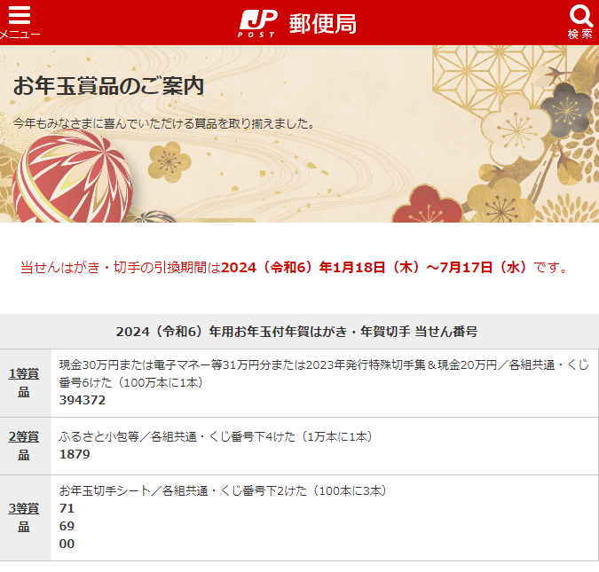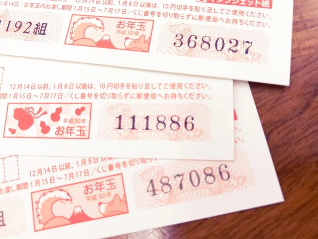 在贺年卡的背面底部会有一组号,每年1月中旬左右会在日本邮局官网上看到获奖组号可以去兑换对应的奖品,就跟买彩票一样!