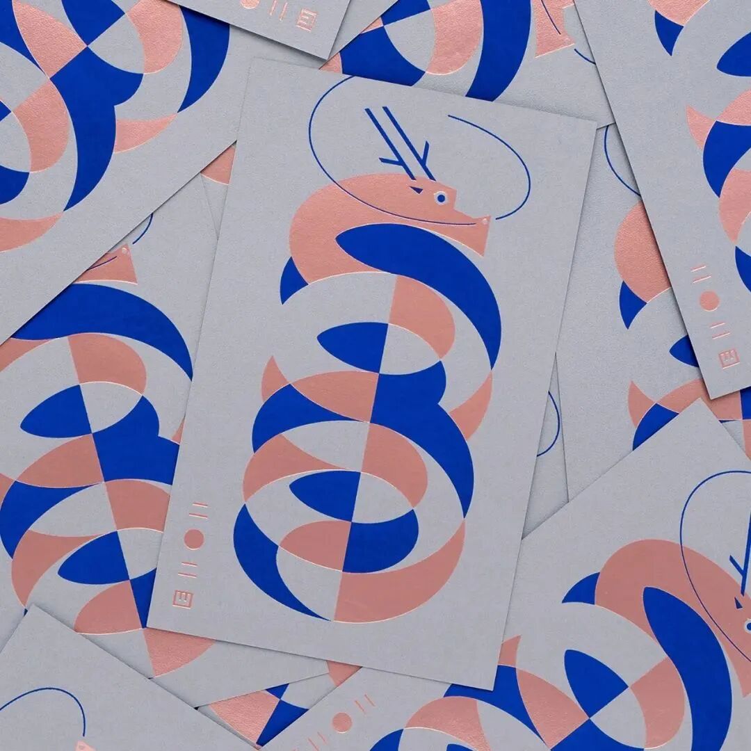 日本插画师藤田雅臣,每年发布一张极具设计感的生肖贺卡,今年也不例外。