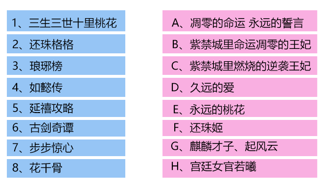 最后,给大家出一道考题:请把下列国产剧的日文译名与中文名称连起来!