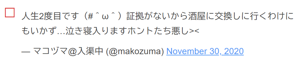 这是我生命中的第二次(#^ω^),因为我没有任何证据,所以我不能去居酒屋交换回来……我在哭泣并入睡,这种感觉太糟了。