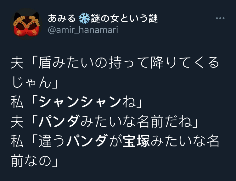 我:是熊猫的名字像宝冢的シャンシャン好嘛!